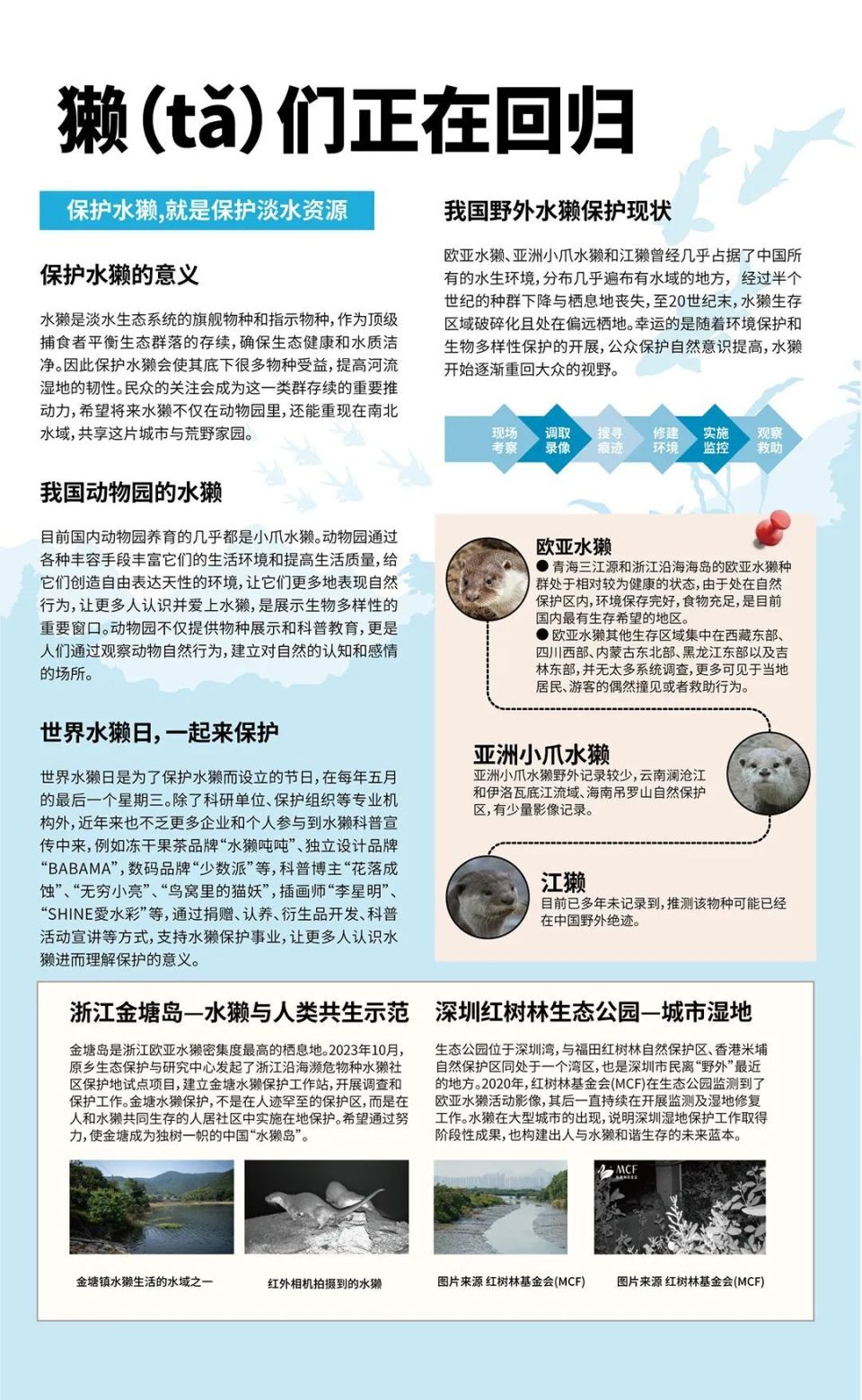 最近,为了迎接 “ 世界水獭日 ” (每年5月最后一个星期三),广州动物园与冻干果茶品牌“水獭吨吨”合作推广 “我 的城市有水獭” 主题活动。 水獭吨吨不仅认养了水獭壮壮,还更新了水獭馆的展牌 ,以更生动清晰的呈现方式,介绍了水獭与人类的关系、水獭在野外的习性以及各种有趣的知识。这些内容不仅仅是让游客认识水獭的名字,更能结合现场观察,了解这一物种为何特别、为何重要,以及保护水獭的意义——保护水獭,就是保护淡水资源。