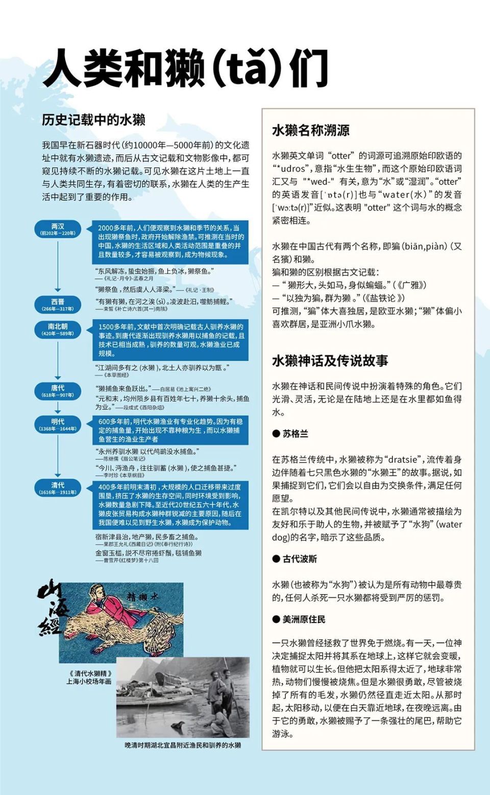 现在人们熟悉的日本“獭祭”酒,取名于水獭捕鱼之后将鱼排列在岸上的行为;但关于獭祭的记载,其实我国早在两千多年前的《礼记》中早已有之:“东风解冻,蛰虫始振,鱼上冰,獭祭鱼。”当时的人将獭祭作为雨水节气的物候标志之一,说明 水獭是容易被观察到的 。而更早的新石器时代,这一时期的文化遗址中也有水獭的遗迹。