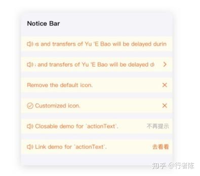 所以总结来说,与snackbar的区别主要有三点:1.展示位置 2.消失机制 3.数量限制 4.展示形式,我们可以根据提示信息的级别来选择用snackbar还是noticebar。