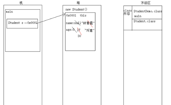 6、通过构造方法给成员变量进行初始化。刘意,30
