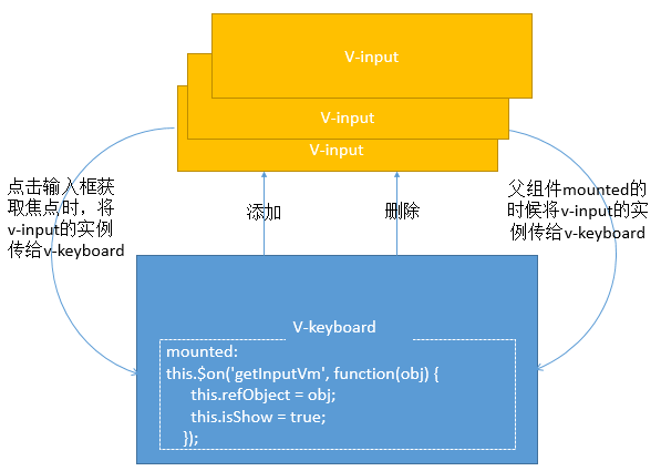 如图6 ,v-keyboard组件会监听'getInputVm'事件,获取v-input的实例。