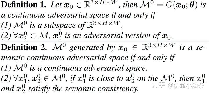 PS:为啥要多加一个语义连续的对抗流形呢。是因为如果以后有用这个范式做了扰动连续的对抗流形,那就不符合语义连续了仅仅符合定义1,所以在这里多写了一个定义,算是为以后的工作做一个细分吧。