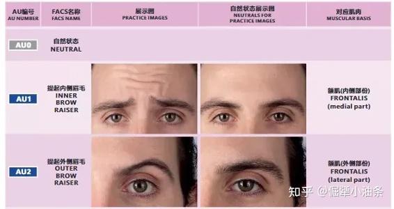 具体实现方案,就是引入了表情编辑的领域知识Facial Action Coding System (FACS),FACS是一种面部表情编码系统,它将面部分为不同的肌肉单元,其中AU向量中的每个元素都对应了一个肌肉单元,向量元素值的大小表示了对应单元的肌肉活跃程度,从而编码表情状态。例如下图中,AU向量中的第一个元素AU1表示了提起内侧眉毛的程度。我们建立与AU空间一一对应的对抗流形,可以用改变AU值的方式,在对抗流形上采样对抗样本,连续地改变AU值,就可以生成表情连续变化的对抗样本了。
