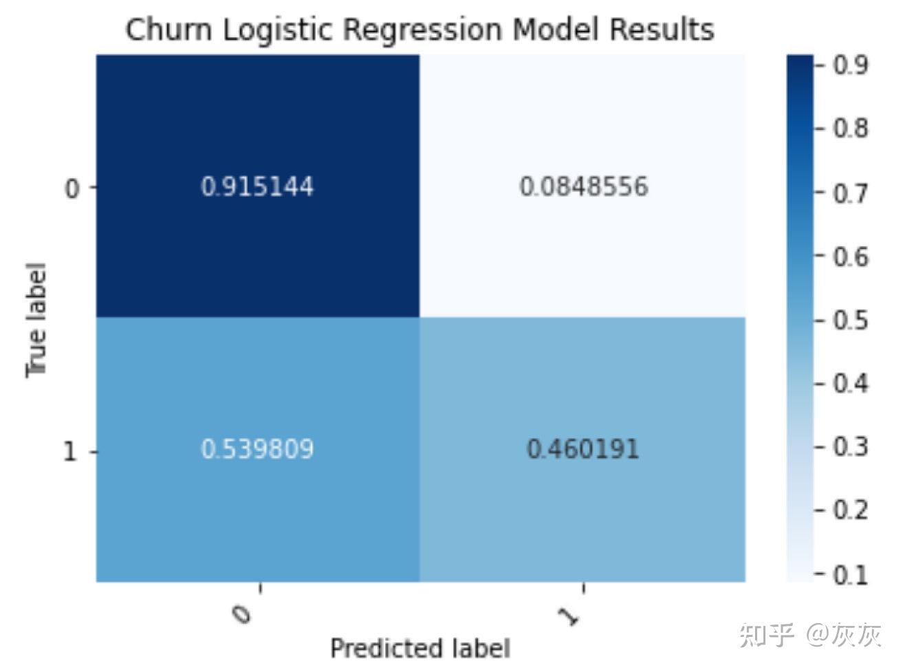 正如我们所见,我们的模型正确预测了91%的不流失客户和46%的流失客户。这清楚地说明了使用准确率的局限性,因为它没有给我们关于正确预测结果百分比的信息。