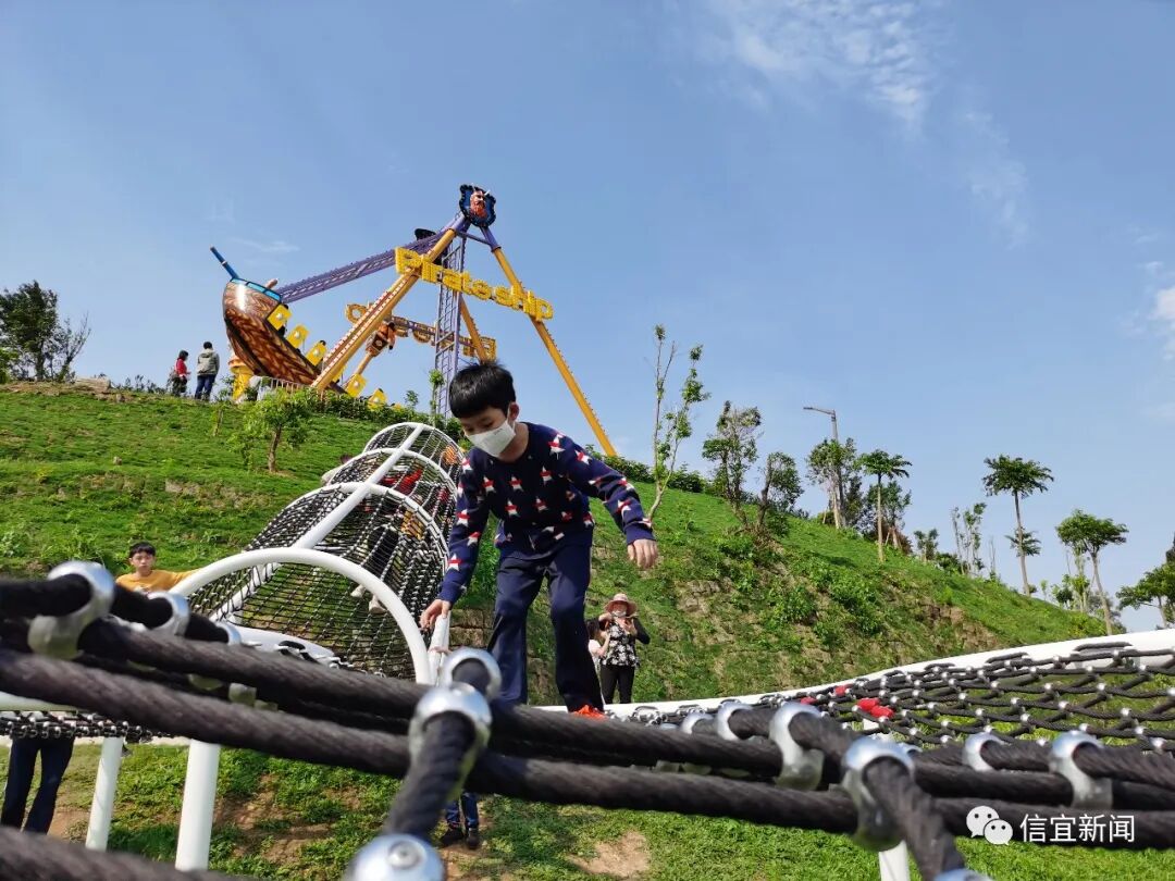风雨桥、碧水绿道、慈孝长廊、浪漫花海、欢乐世界、摩天轮、空中玻璃桥,还有纷繁多样的艺术标志,明晰地向广大游客展示着这座浓缩了信宜文化的庄园的独特魅力。