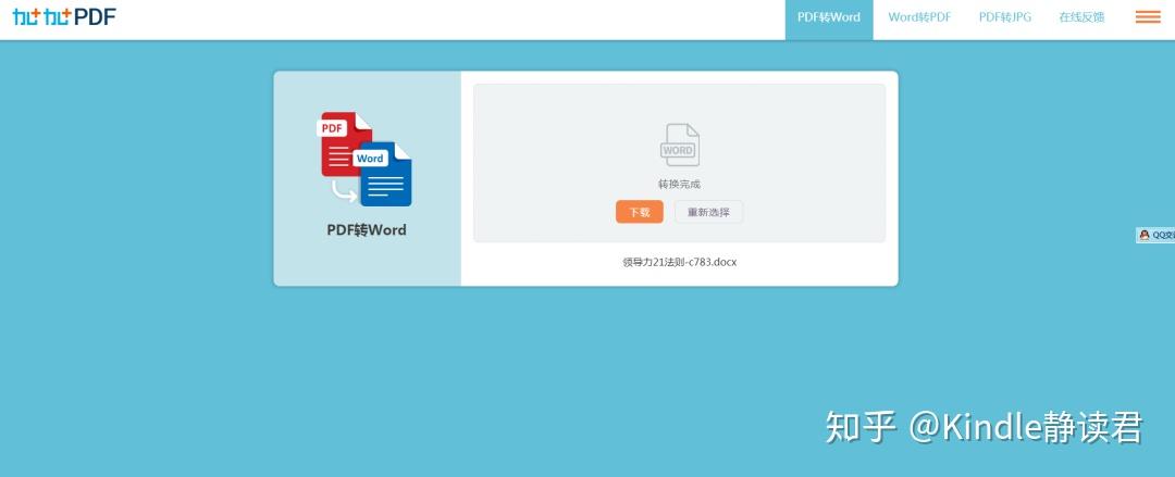 加加 PDF的界面非常简洁大方,功能一目了然,而且没有任何的广告。使用时直接把文件拖拽到上面就行了,非常简单,转换完成后点击下载就可以得到转换后的文件,转换速度取决于你的网速。