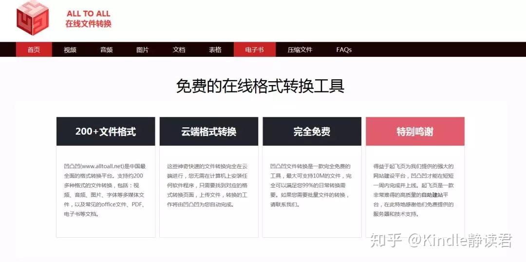 而ALL TO ALLL在线文件转换导航则是一个“十项全能”的网站:这是一款支持200多种格式的在线转换工具,基本你需要用到的文件都可以在上面找到;而且他是完全免费的。