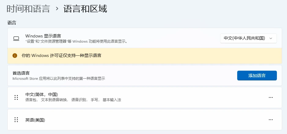 (重要) 将「中文(简体,中国) - 美式键盘」替换为纯正的 「英语(美国) - 美式键盘」 ,同时还不需要下载语言包,就能够实现右下角语言栏显示为 「ENG」 而不是 「简体」 ——评论区需要 ,而且中文的美式键盘存在一个bug,也就是在开始菜单的搜索栏使用时会出现下划线但是没有候选词,按下空格仍然会打出中文,其余场景不会,但英语的美式键盘不会出现这个问题