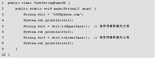 在例中,先定义一个字符串,打印出字符串,然后调用toUpperCase()方法将字符串转换为大写并打印,最后调用toLowerCase()方法将字符串转换为小写并打印。