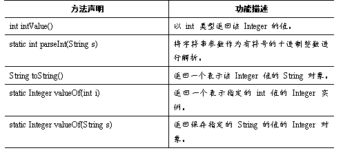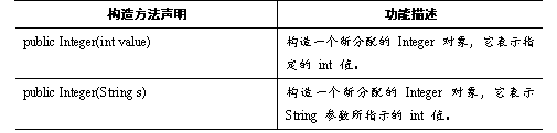 表中列举出Integer类的构造方法,它还有一些常用方法,如表所示。