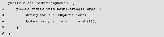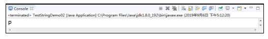 在例中,先定义一个字符串,然后调用charAt()方法取出字符串中第4个位置的字符并打印,这里索引位置也是从0开始计算的,第4个字符为p。
