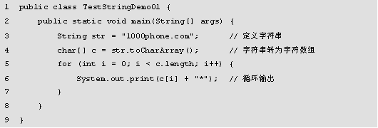 在例中,先定义一个字符串,然后调用toCharArray()方法将字符串转为字符数组,最后循环输入字符串。