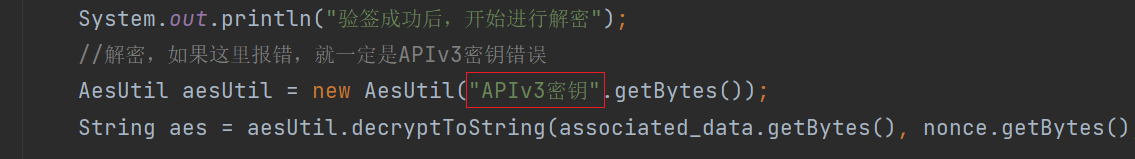 AesUtil aesUtil = new AesUtil("APIv3密钥".getBytes());