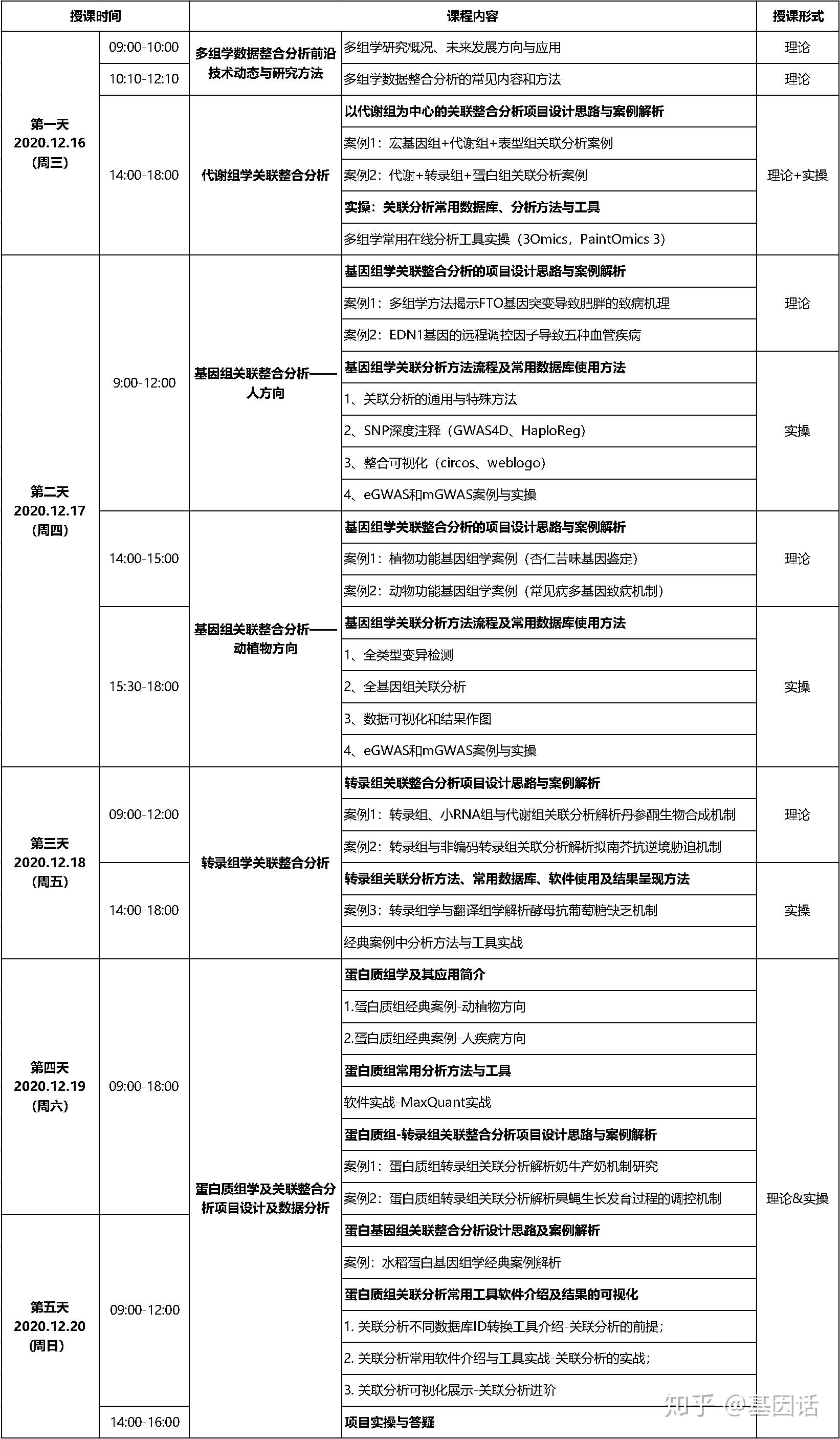 注:华大基因学院保留对以下课程信息进行调整的权利。