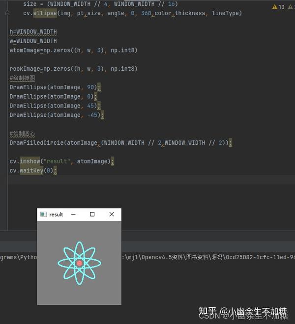 其中,参数 img表示输入的图像(圆画在这个图像上); center表示椭圆圆心坐标; axes表示轴的长度; angle表示偏转的角度; start_angle表示圆弧起始角的角度; end_angle表示圆弧终结角的角度; color表示线条的颜色; thickness表示线条的粗细程度; line_type表示线条的类型; shift表示圆心坐标点和数轴的精度。