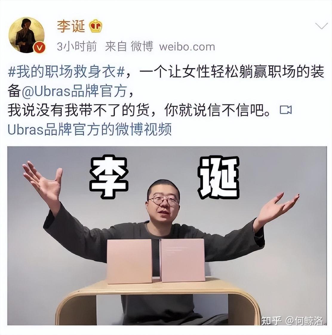 李诞在个人微博发布了一条女性内衣营销广告,话题是#我的职场救身衣#,文案“一个让女性轻松躺赢职场的装备”。