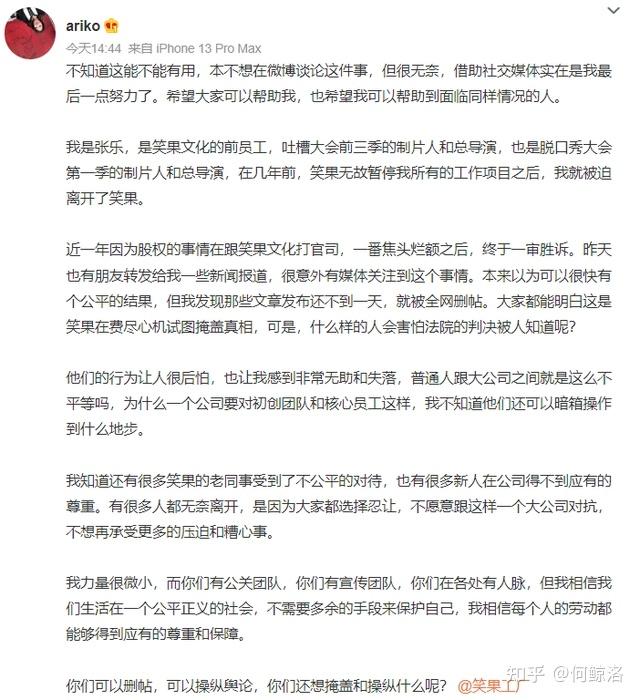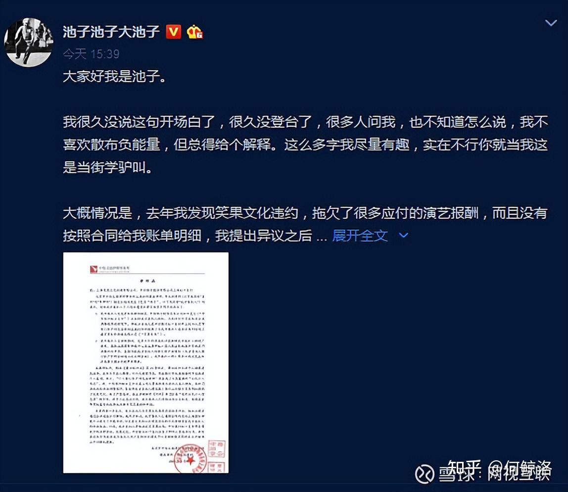 池子发长文控诉笑果文化违约、欠薪,侵犯个人隐私。