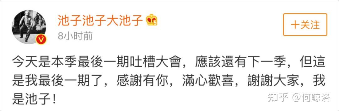 在脱口秀演员池子宣布退出《吐槽大会》后。