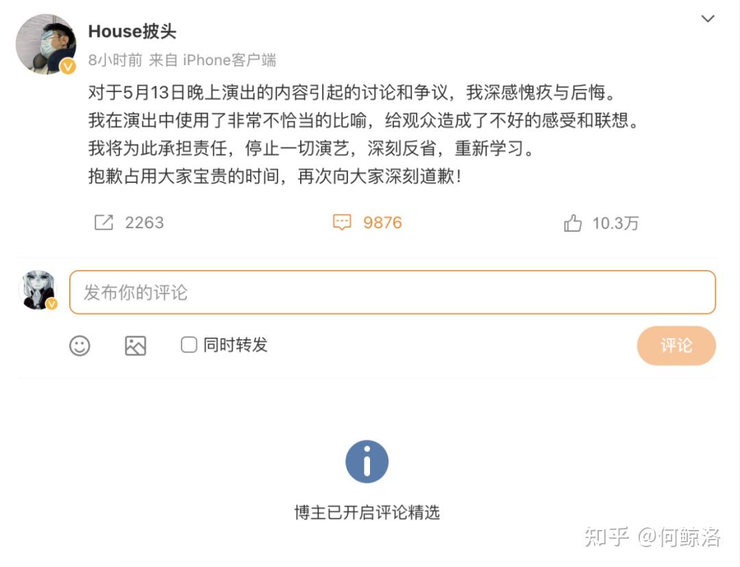 涉事演员@House披头 同时发文道歉。