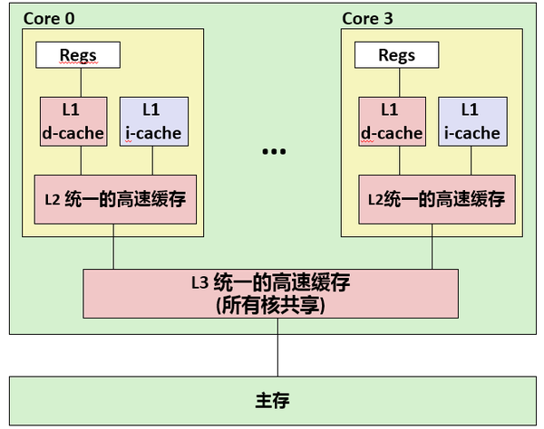 具体如下图所示,主存可以作为一个存储设备,L3是主存的缓冲区域,从L3存取数据的过程就叫做缓存。