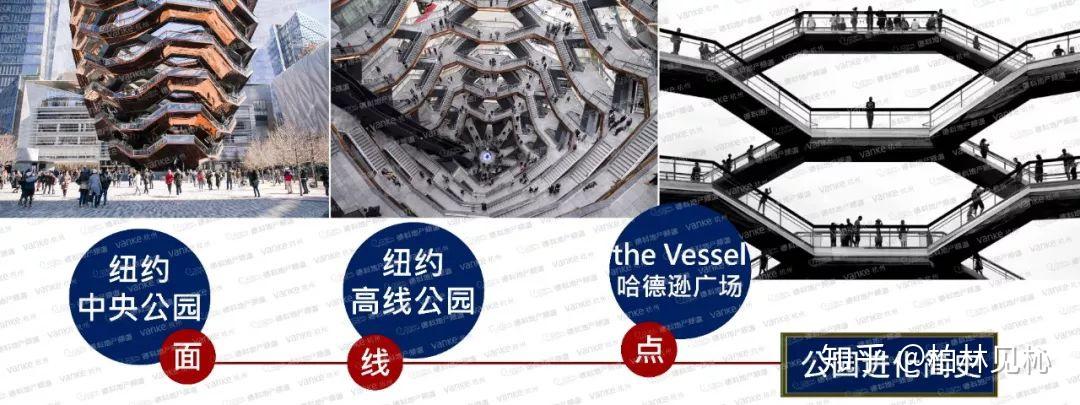 纽约中央公园和高线公园,都已经是我们非常熟悉的案例,这里的第三个案例是一个网红项目,但它有极高的价值:the Vessel。在哈德逊广场上面。