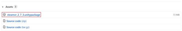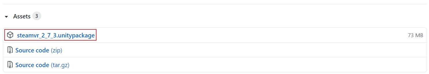 在列表中列出了SteamVR Plugin自发布以来的所有历史版本,开发者可选择所需的版本进行下载。在每个版本介绍的底部,选择.unitypackage文件下载即可。