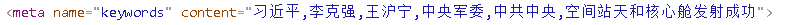 获取新闻关键词:观察新闻URL网页HTML代码,发现name为keywords的meta元素content值存储新闻关键词信息。