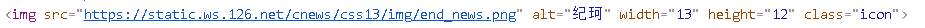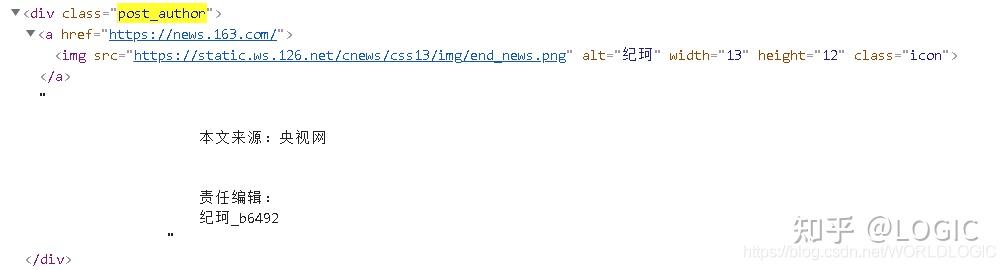 获取新闻作者:观察新闻URL网页HTML代码,发现class为icon的img标签alt值存储新闻作者信息,可以使用class索引。