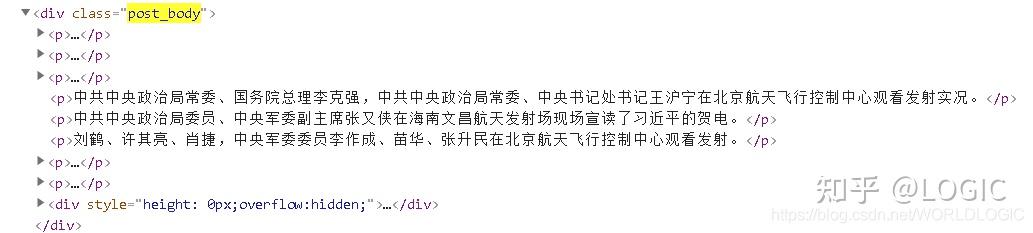 获取新闻内容:使用chrome开发者工具定位工具,发现class为post_body的div标签内的text为新闻正文信息。