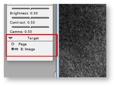 如图5,我们可以通过快捷工具栏中的 Display Control 使用亮度和衬度划尺来优化图像的显示。此外,双击”Contrast”或”Brightness”或“Gamma”文字(红框中)可以复原亮度或衬度的初值。