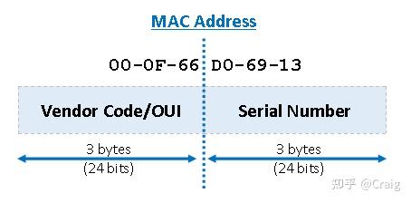 简单来说,Mac 地址(EUI-48,6 bytes)由两段构成,其中的 3 bytes 叫 OUI( Organizationally unique identifier ),得花钱从 IEEE 购买,作为独特的厂商标识,另外 3 bytes 由厂商自行分配,由此保证每个设备的 Mac 地址都是独一无二的。设备的 Public 地址一旦被固化到设备中后,在整个生命周期内都不能再修改。