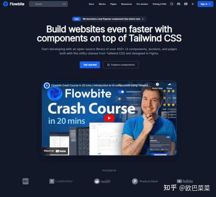FlowBite是一个模块化的CSS组件库,用于更快、更轻松地进行Web开发。它通过响应式网格、一致的排版、可定制的组件和可扩展的架构为你的项目奠定了坚实的基础。这是一个开源库,因此你可以根据你的特定要求对其进行自定义。它提供了450多个UI组件(如按钮和表单)、部分(如页眉、页脚、导航栏)以及使用TailwindCSS的实用程序类构建的页面——所有这些都使用Figma标志性的用户界面设计软件设计。Flowbite为开发人员提供的组件数量使构建复杂、快速加载的Web应用程序和网站变得容易。
