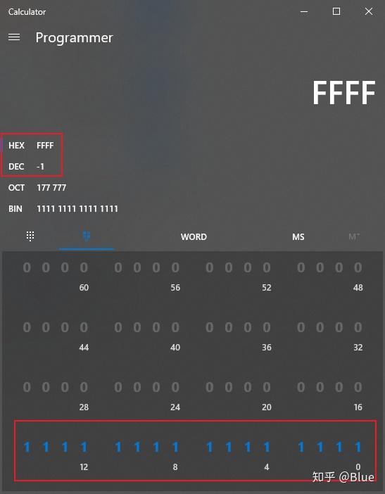 4位16进制数也就是4*4bit=2B的大小。我这里用8bit=1B的整数来列表,以便于观察: