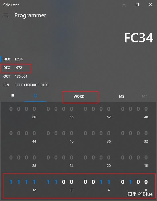 FC34符号位1表示负数,反码为03CB,补码为03CC,原数为