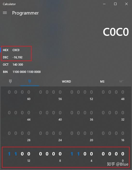 C0C0符号位1表示负数,反码为3F3F,补码为3F40,原数为