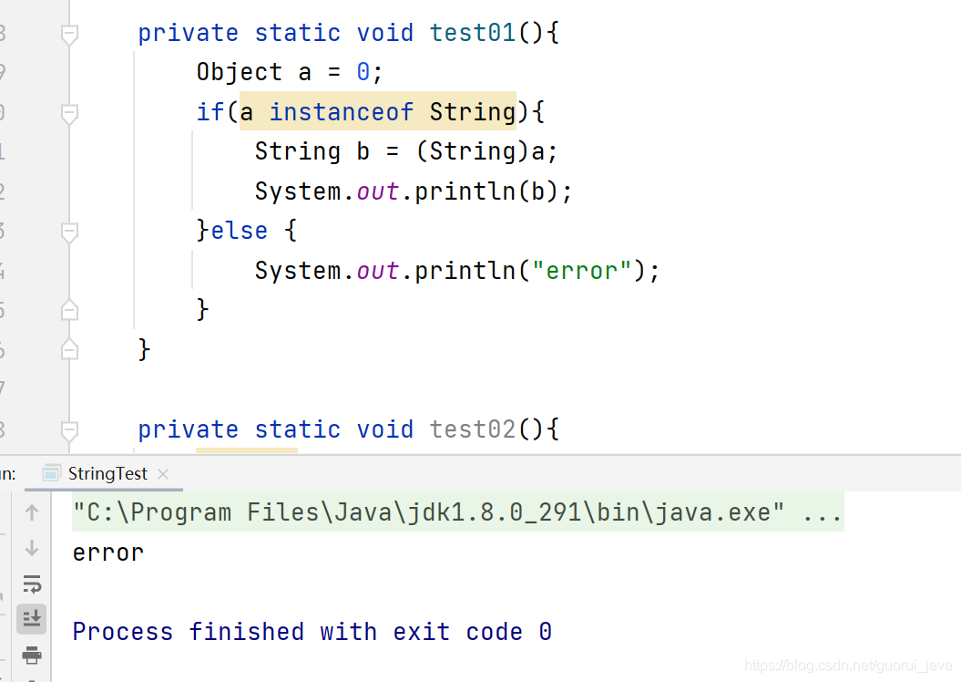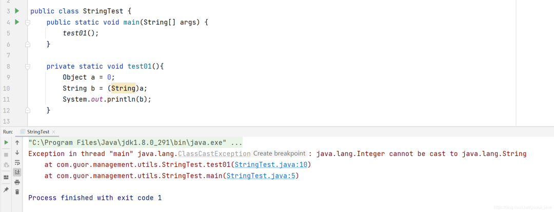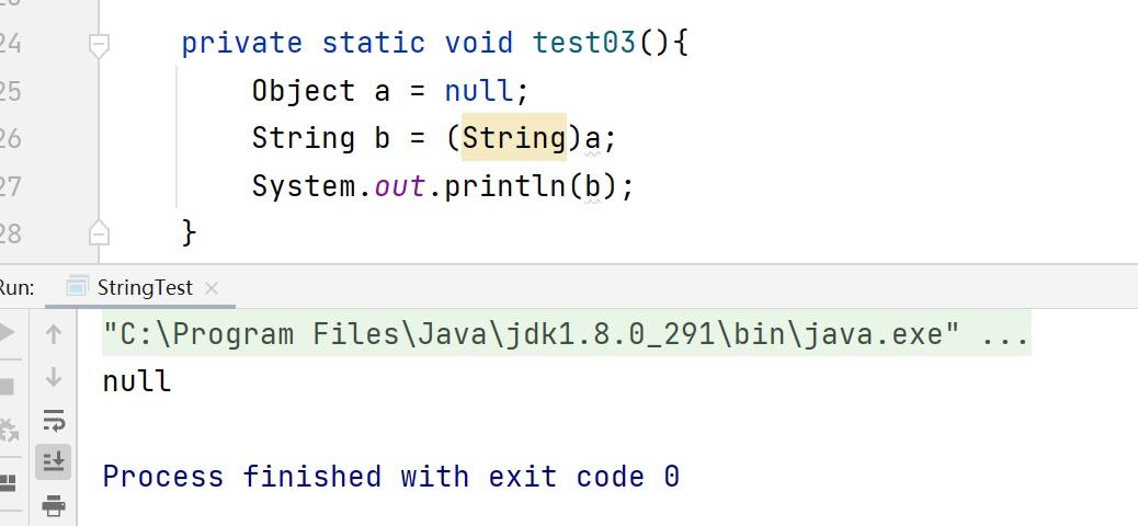 String是标准的类型转换,将Object类型转为String类型,使用String强转时,最好使用instanceof做一个类型检查,以判断是否可以进行强转,否则容易抛出ClassCastException异常。需要注意的是编写的时候,编译器并不会提示有语法错误,所以这个方法要谨慎的使用。