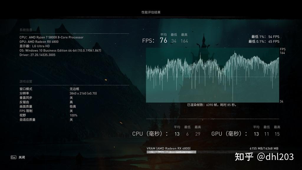 为了真实检验SAM技术的优势,选用了6款游戏来进行测试,特别是其中有RX 6700XT提高较大的游戏,现在用RX 6800来验证下结果。所有游戏除《控制》外,画面设置都是4K分辨率,最高画质,来运行游戏内置的BENCHMARK。