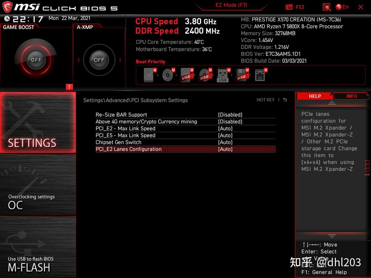 对于使用微星主板的用户来说,启用SMART ACCESS MEMORY非常简单。 更新BIOS后,找到“Settings > Advanced > PCI Subsystem Settings”,启用“Re-size BAR”和“Above 4G memory/Crypto Currency mining”,按“ F10”,保存设置并重新启动。 根据我个人在测试过程中的经验,打开SAM有个前提条件,分区表必须是GPT,文件格式和BIOS必须是UEFI模式。否则,切换回CSM模式,SAM会自动关闭。