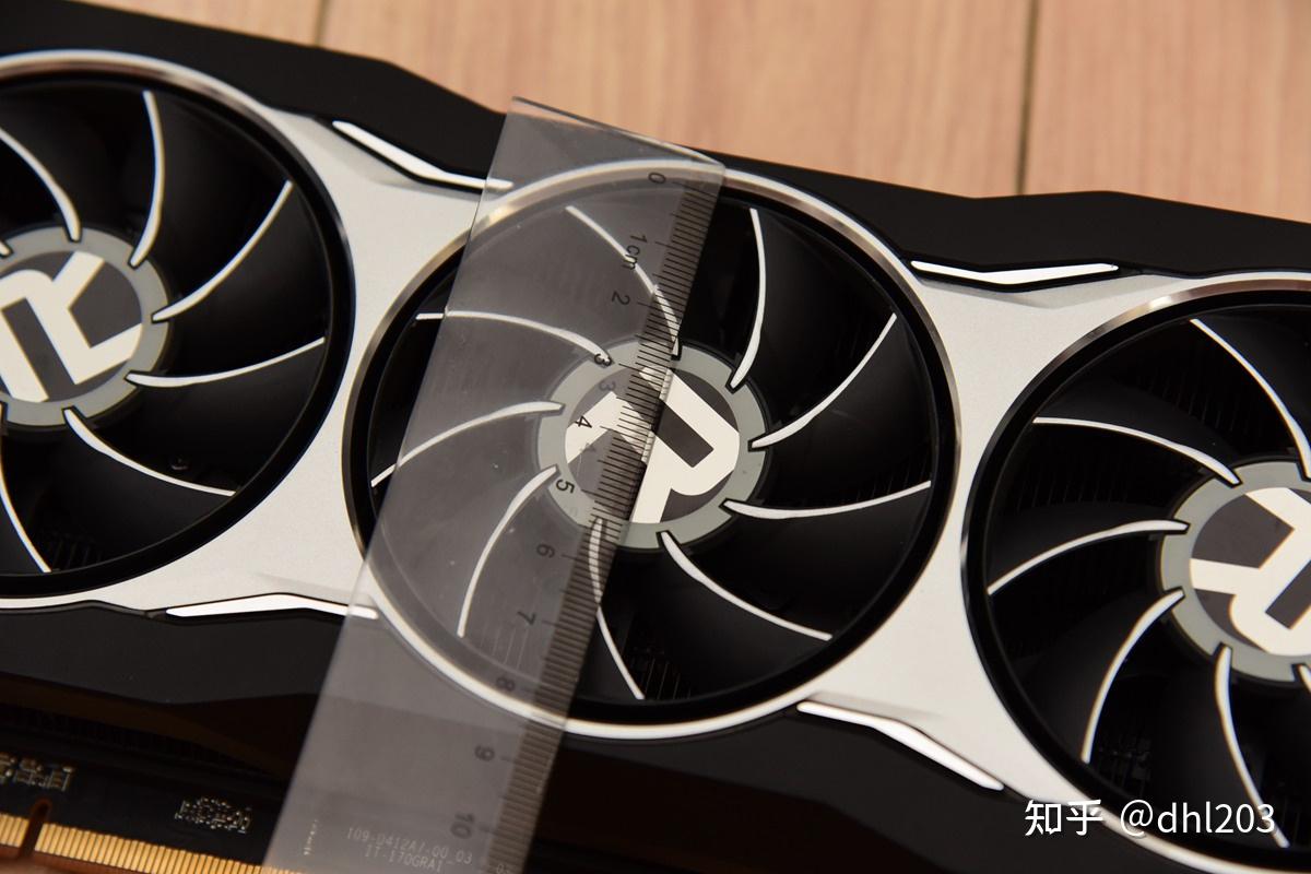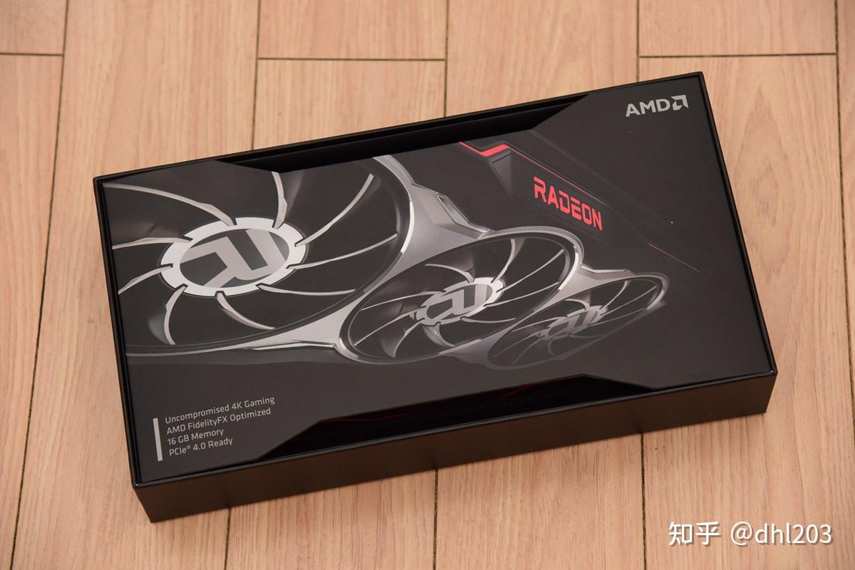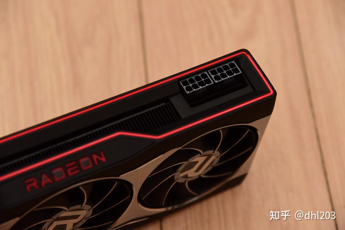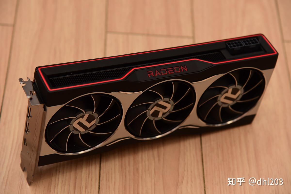 AMD公版RX6800采用了三风扇直触一体式解热器,对于小机箱来说,还算兼容性不错。散热器风扇直径为8厘米,支持智能停转技术,在低负载或温度较低时会停止转动,完全静音,顶部为RADEON标识。