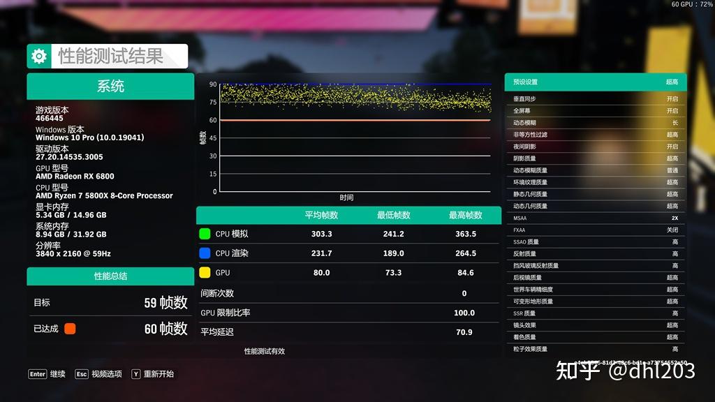 打开SAM,4K分辨率,最高画质,平均帧数为72。