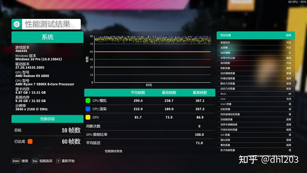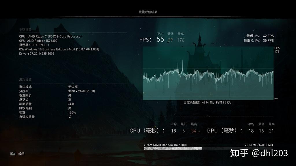 关闭SAM,4K分辨率,最高画质,平均帧数为64。