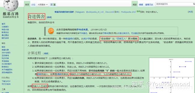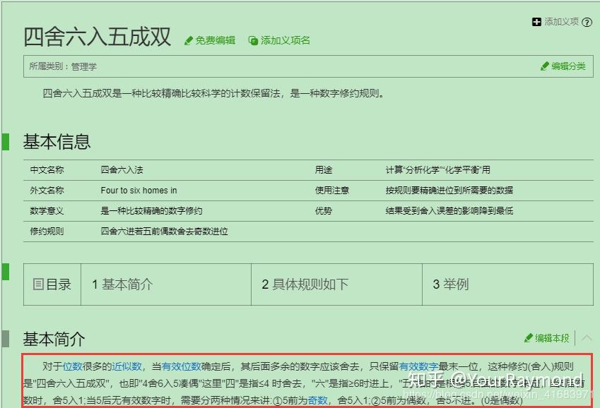 再来看一下什么是“四舍六入无成双”的原则,下面是维基百科和360百科的介绍: