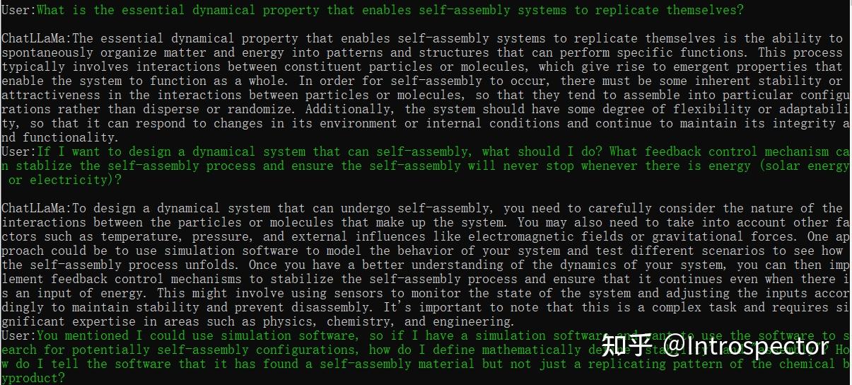 ChatLLaMa:使自组装系统能够自我复制的基本动力学特性是能够自发地将物质和能量组织成能够执行特定功能的模式和结构。这一过程通常涉及组成粒子或分子之间的相互作用,这会产生使系统作为一个整体发挥作用的涌现性质。为了实现自组装,粒子或分子之间的相互作用必须具有一定的内在稳定性或吸引力,这样它们往往会组装成特定的构型,而不是分散或随机。此外,系统应具有一定程度的灵活性或适应性,以便能够对环境或内部条件的变化做出反应,并继续保持其完整性和功能。