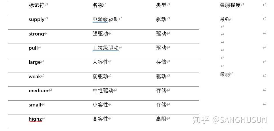 1)Wire型: 线网表示逻辑单元的物理连接,可以对应为电路中的 物理信号连线 ,这种变量类型不能保持电荷(除trireg之外)。连线型变量必须要有 驱动源 ,一种是连接到一个们或者模块的 输出端 ,另一种是用assign 连续赋值语句对它进行赋值 。若没有驱动源,将保持高阻态z (除trireg之外)。
