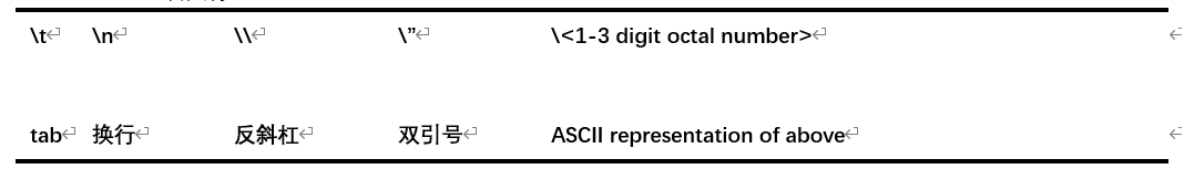 • 字符串中可以使用一些C语言转义(escape)符,如\t \n