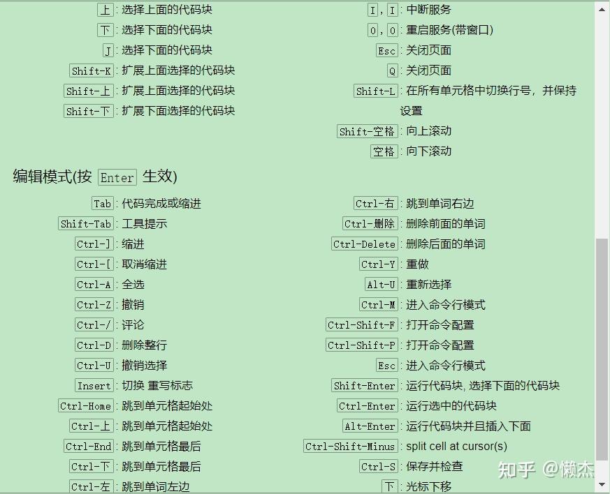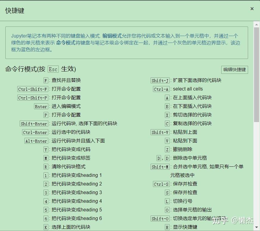 上述快捷键都是在非编辑下(蓝色模式)用的,就是点block左边序号选中整个block的状态下,或者按 Esc 键。