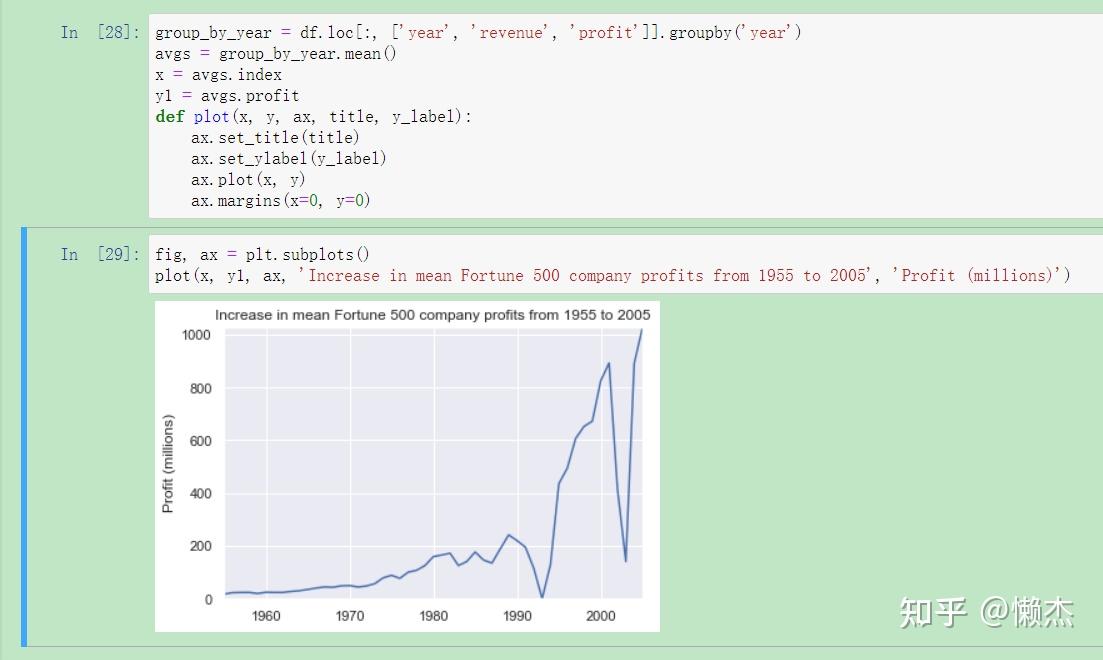 接下来,我们可以通过绘制每年的平均利润来解决手头的问题。我们也可以绘制收入,因此首先我们可以定义一些变量和方法来减少代码。