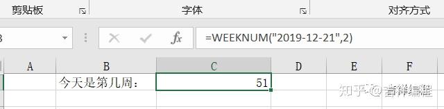 例如:判断2019年12月21为2019年的哪个周时,使用如下函数:=WEEKNUM("2019-12-21".2)