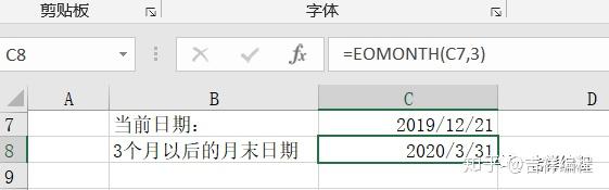 获取指定日期往前或往后几个月的特定月份的月底日期函数:EOMONTH()