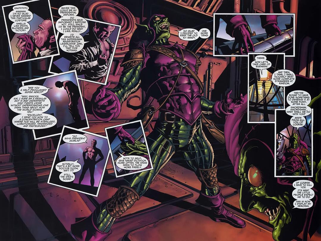 ,奥斯本集团的董事长,利用自己的身体进行人体强化实验,结果产生了凶残的人格,制造了各种高科技装备后化身成绿魔。